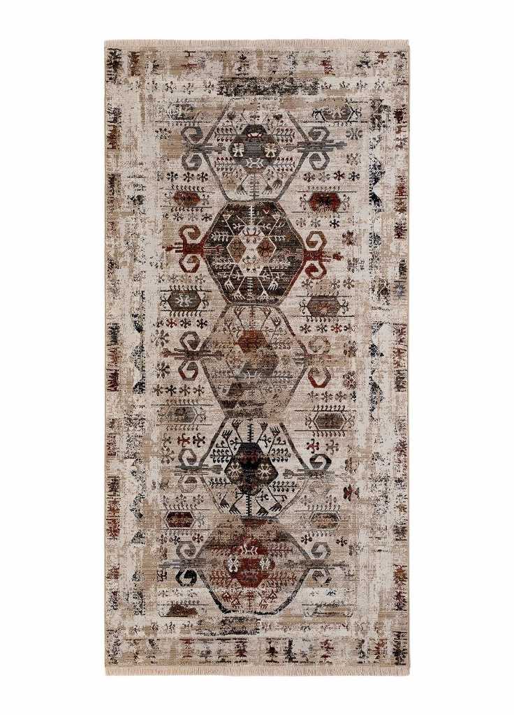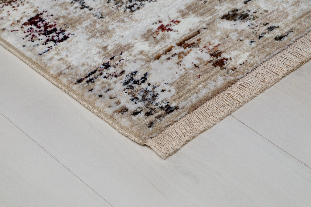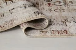 Agadir Aldan har en creamvit bottenfärg med matchande creamfärgad langettering. Mattan har vintage look och går i rost, gråa samt cream färgade toner. Aldan har ett fint avslut i kortändarna med en snygg creamfärgad frans. Mattan ger en härlig ombonad känsla i behagliga färger med skön vintagekänsla. Passar lika bra i vardagsrummet som i sovrummet och ger en härlig ombonad känsla vare sig den placeras under soffan eller vid sängen.
