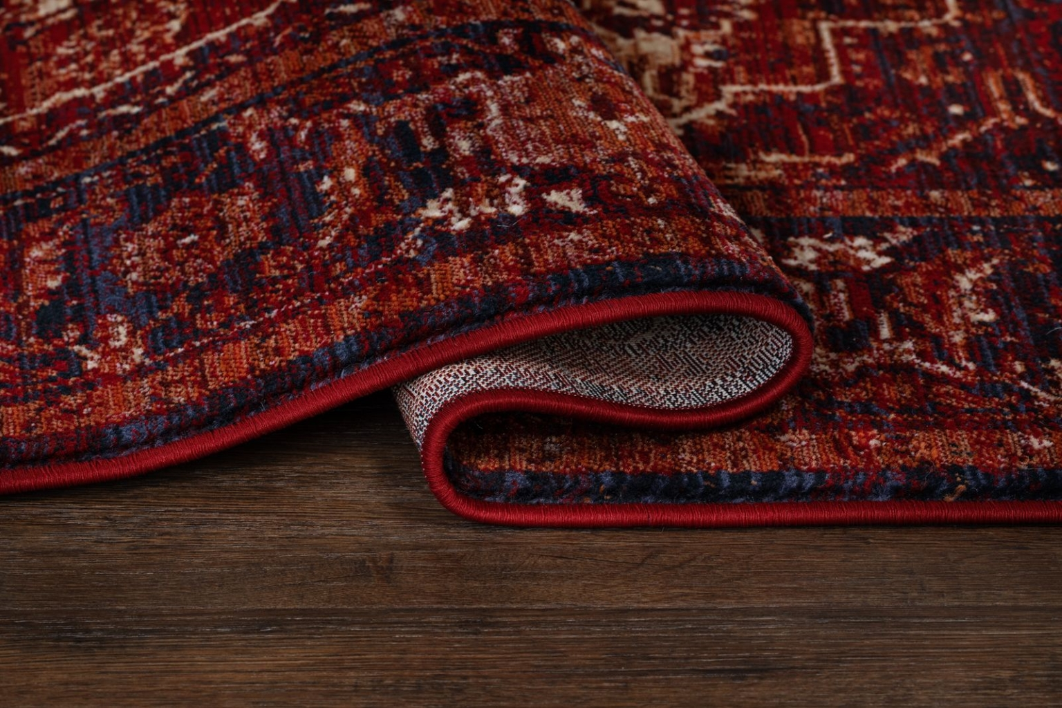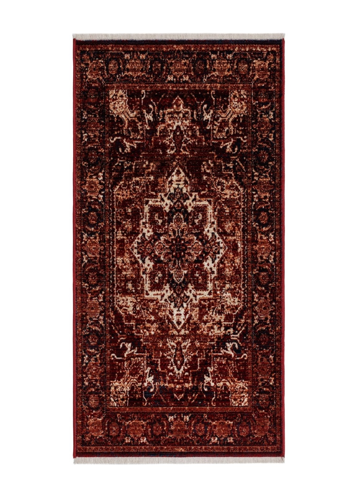 Agadir Medaljong har en rödfärgad bottenfärg med matchande langettering. Mattan har ett fint orientaliskt medaljongmönster som går i cream, blå samt rödfärgade toner samt avslut i kortändarna med en stilig frans. Mattan ger en härlig ombonad känsla i behagliga färger. Passar lika bra i vardagsrummet som i sovrummet och ger en härlig ombonad känsla vare sig den placeras under soffan eller vid sängen.