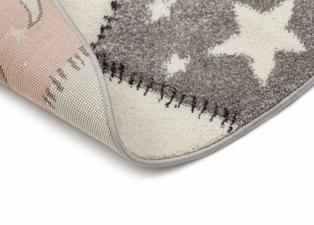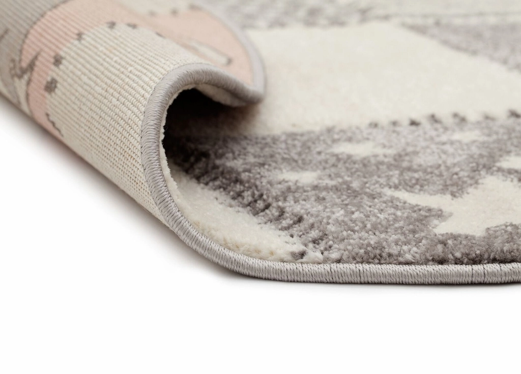 Atlas Cute Elephant har vit bottenfärg med rosa och grått rutmönster i patchlook. Mattan pryds av flera stjärnor, fluffiga moln och små söta elefanter. Atlas Cute Elephant har en grå langettering på långsidorna och är gjord i carvingteknik, vilket innebär att den har utskärningar för att detaljer skall bli mer framträdande.
