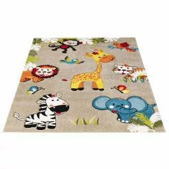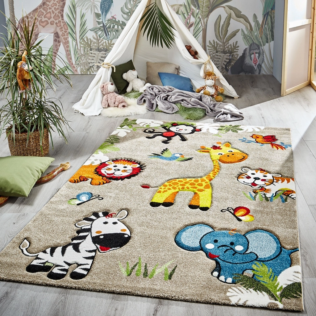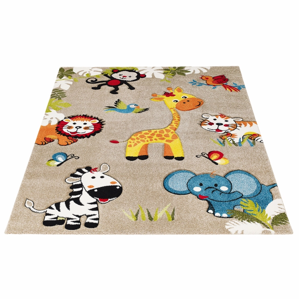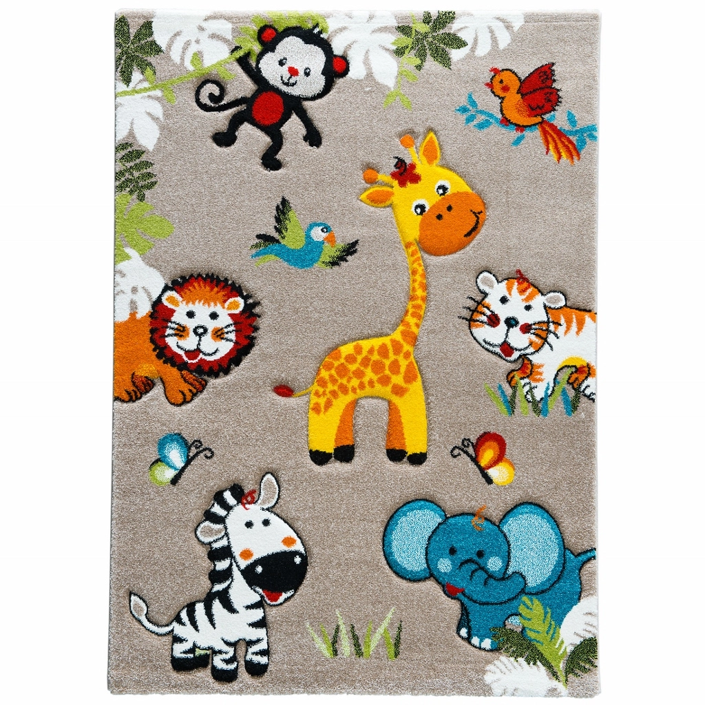 Härligt lekfull matta med djur! Den färgglada mattan blir en mysig och rolig plats för lek på golvet. Djugel passar i alla barnrum och mattans tjocka lugg dämpar ljud och skapar en ombonad känsla.