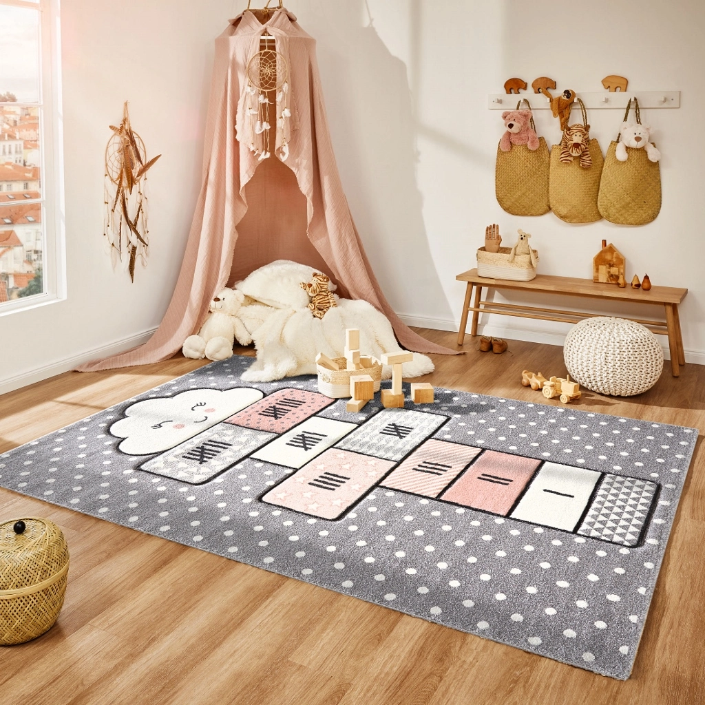 Denna matta från Kids Collection med en hopphage på blir ett roligt inslag i barnrummet. Från bakom hopphagen tittar en moln fram, vilket ger mattan ett extra lekfullt inslag. Inredning som kombinerar lek med stil och estetik, kan det bli bättre?