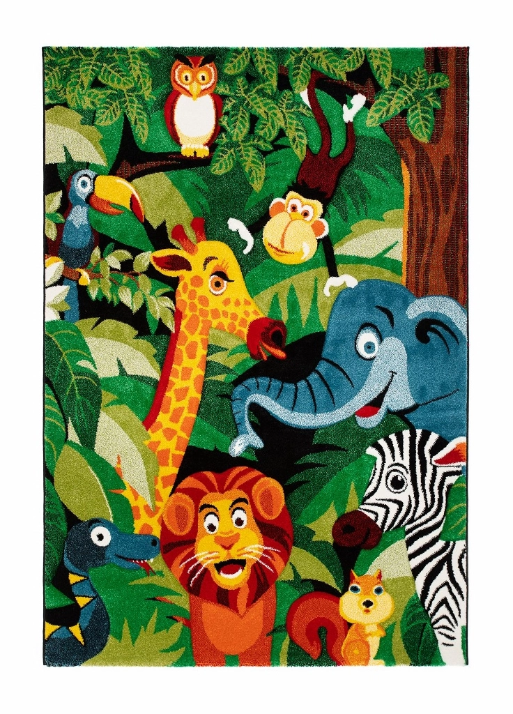 Härligt lekfull matta med djur! Den färgglada mattan blir en mysig och rolig plats för lek på golvet. Djugel passar i alla barnrum och mattans tjocka lugg dämpar ljud och skapar en ombonad känsla.