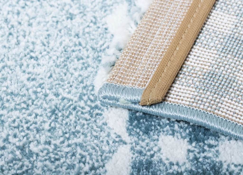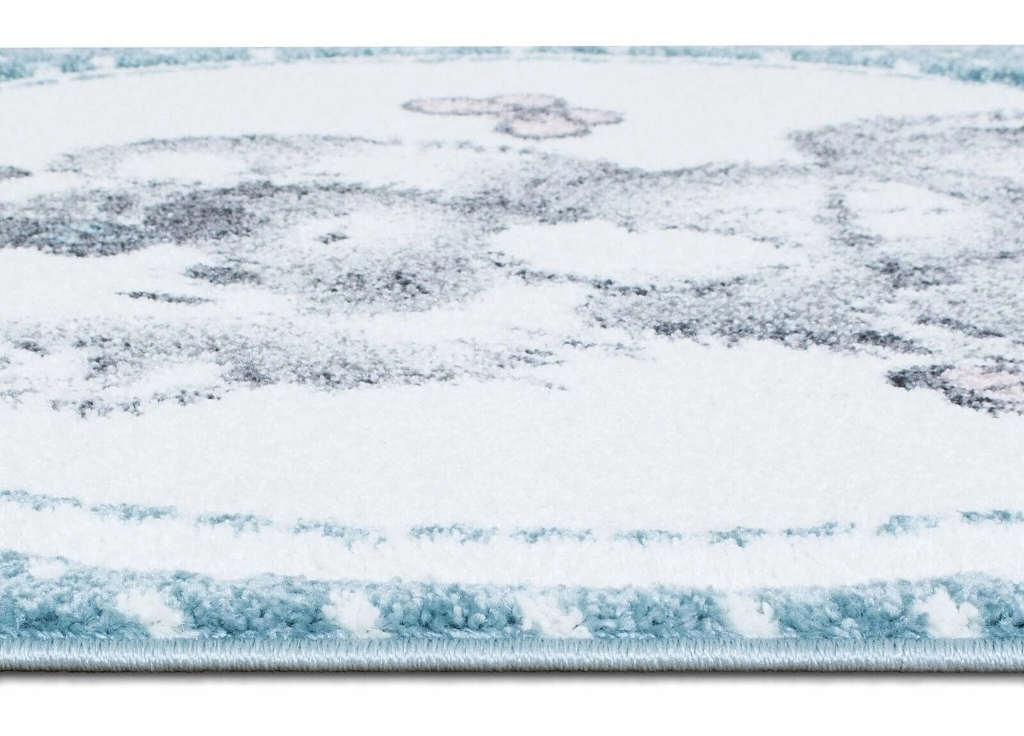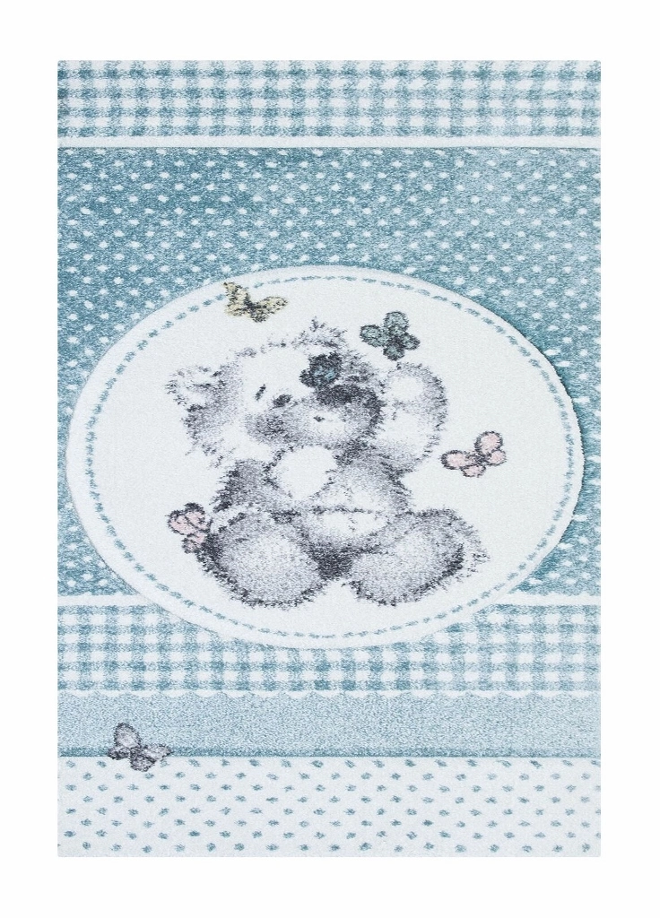 Atlas Teddybear har en turkos bottenfärg och matchande langettering på långsidorna. Mattan har ett vitt rutmönster som pryds av en söt nallebjörn och små fjärilar i olika nyanser. Atlas Teddybear har en kort skuren lugg och är maskinvävd i polypropylen, vilket är ett syntetmaterial som är lätt att rengöra och hålla fri ifrån ludd och damm.