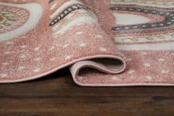Atlas Tiki har rosa bottenfärg med matchande langettering på långsidorna. Mattan pryds utav ett tikimönster och hjärtan i vitt, antracit och guld. Atlas Tiki är maskinvävd och gjord i carvingteknik, vilket innebär att den har utskärningar för att få detaljer mer framträdande.