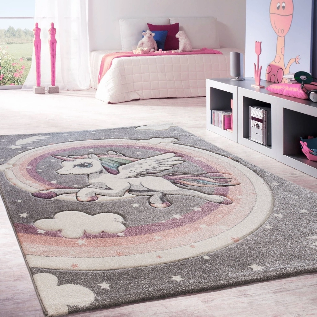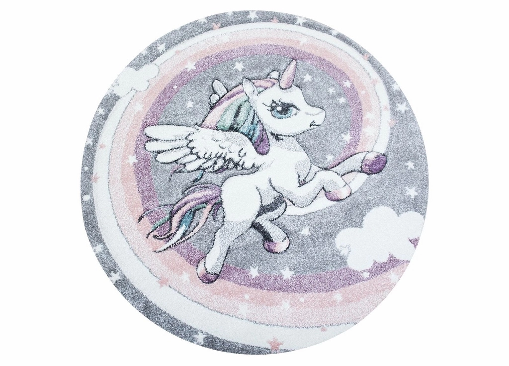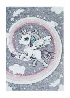 Atlas Unicorn är en maskinvävd matta som har grå bottenfärg och matchande langettering. Mattan pryds av en vit enhörning som har vita vingar och pastellfärgad man och svans. Enhörningen omges av vita stjärnor och moln. Atlas Unicorn har en kort skuren lugg i polypropylen, vilket är ett syntetmaterial som är lätt att rengöra och hålla fri ifrån ludd och damm.