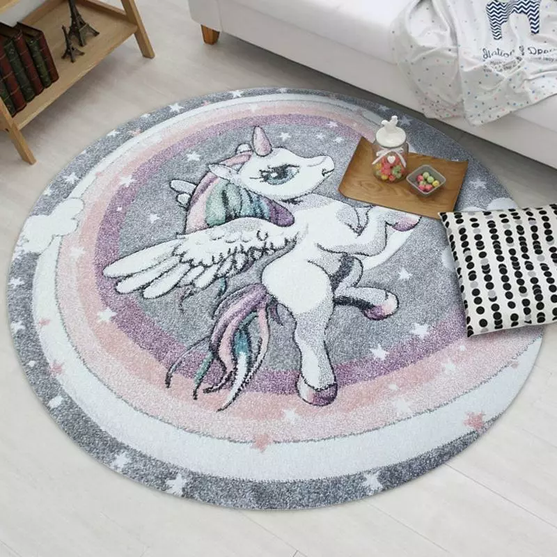 Atlas Unicorn är en maskinvävd matta som har grå bottenfärg och matchande langettering. Mattan pryds av en vit enhörning som har vita vingar och pastellfärgad man och svans. Enhörningen omges av vita stjärnor och moln. Atlas Unicorn har en kort skuren lugg i polypropylen, vilket är ett syntetmaterial som är lätt att rengöra och hålla fri ifrån ludd och damm.