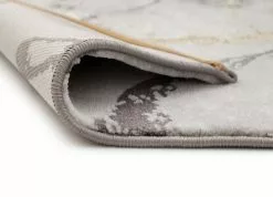 Betong Marmor har en Grå/Silvrig bottenfärg med ett mönster i guld samt matchande langettsöm som löper längs långsidorna. Mattan är gjord i carvingteknik, vilket innebär att den har utskärningar för att färger och detaljer skall bli mer framträdande och ge större effekt. Mattans mönster för tankarna till marmor då den skiftar i olika grå toner, samt att den har mörkare partier som ger mattan ett djup. Betong Marmor har en kort skuren lugg och är maskinvävd i polypropylen, vilket är ett syntetmaterial som är lätt att rengöra och hålla fri ifrån ludd och damm. Eftersom den har korta fibrer så tränger inte smuts in lika lätt som på en matta med längre fibrer och den är även resistent mot de flesta fläckar.