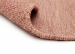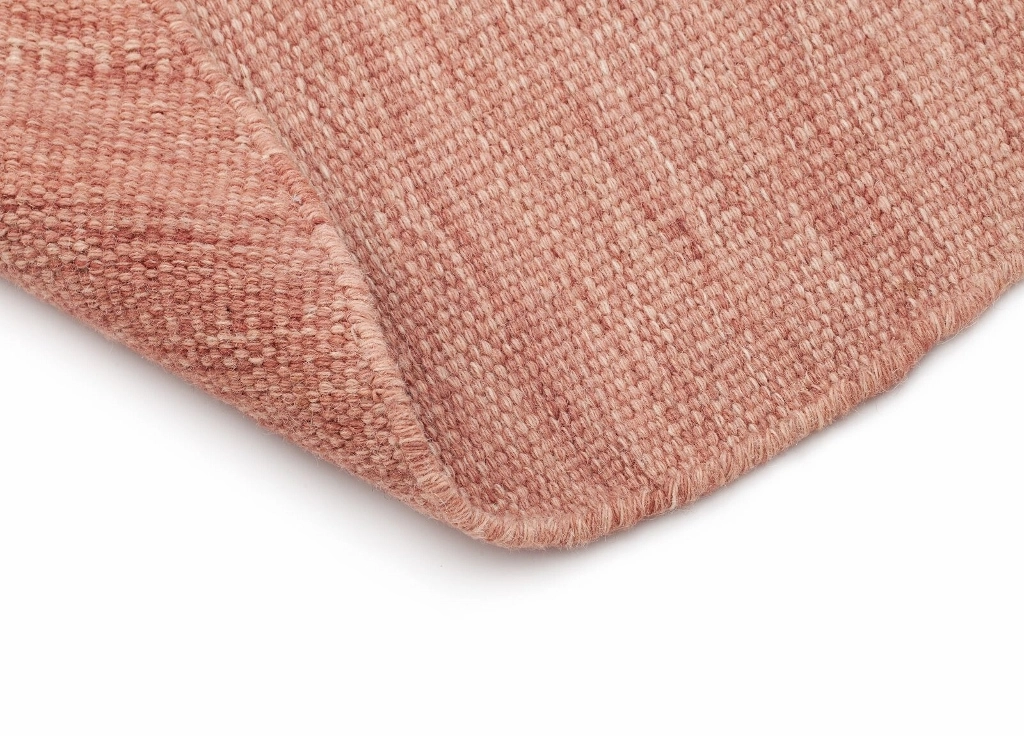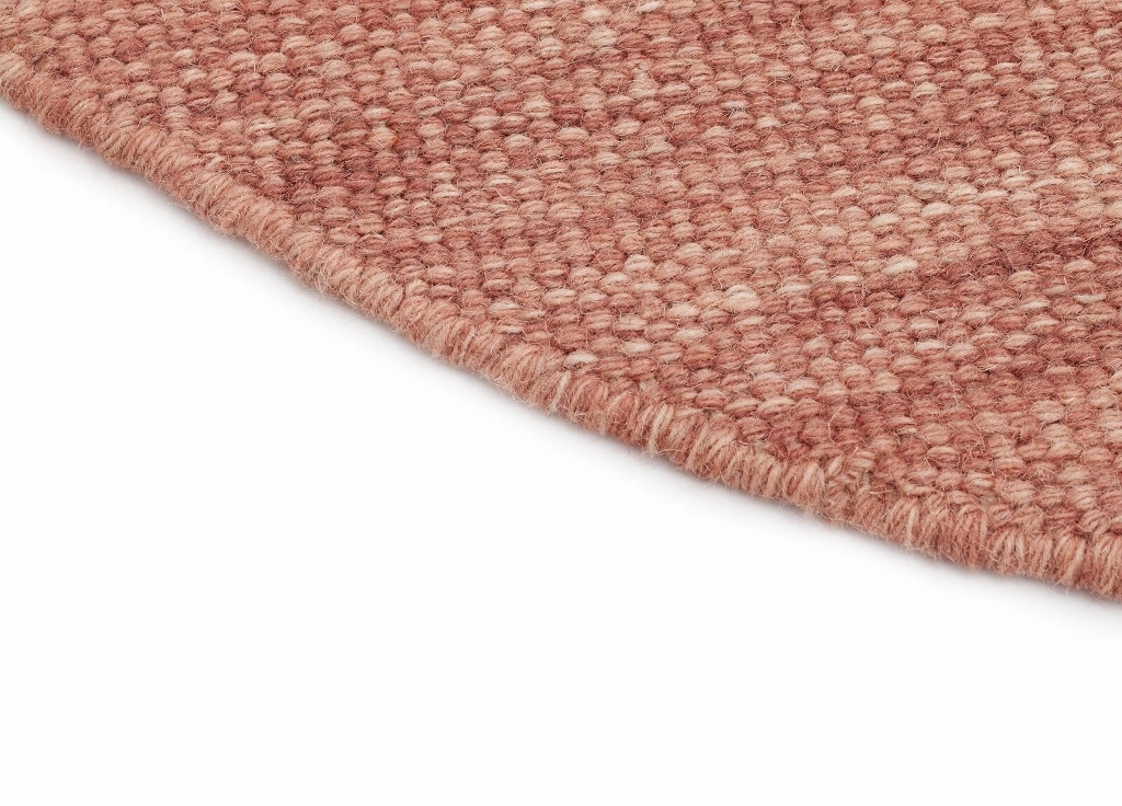 Birka är en handvävd ullmatta som har en snygg melerad finish i cremevita och rosa toner. Mattan har en dekorativ läderdetalj med tryck, samt att mattan är vändbar och går att använda på båda sidor.