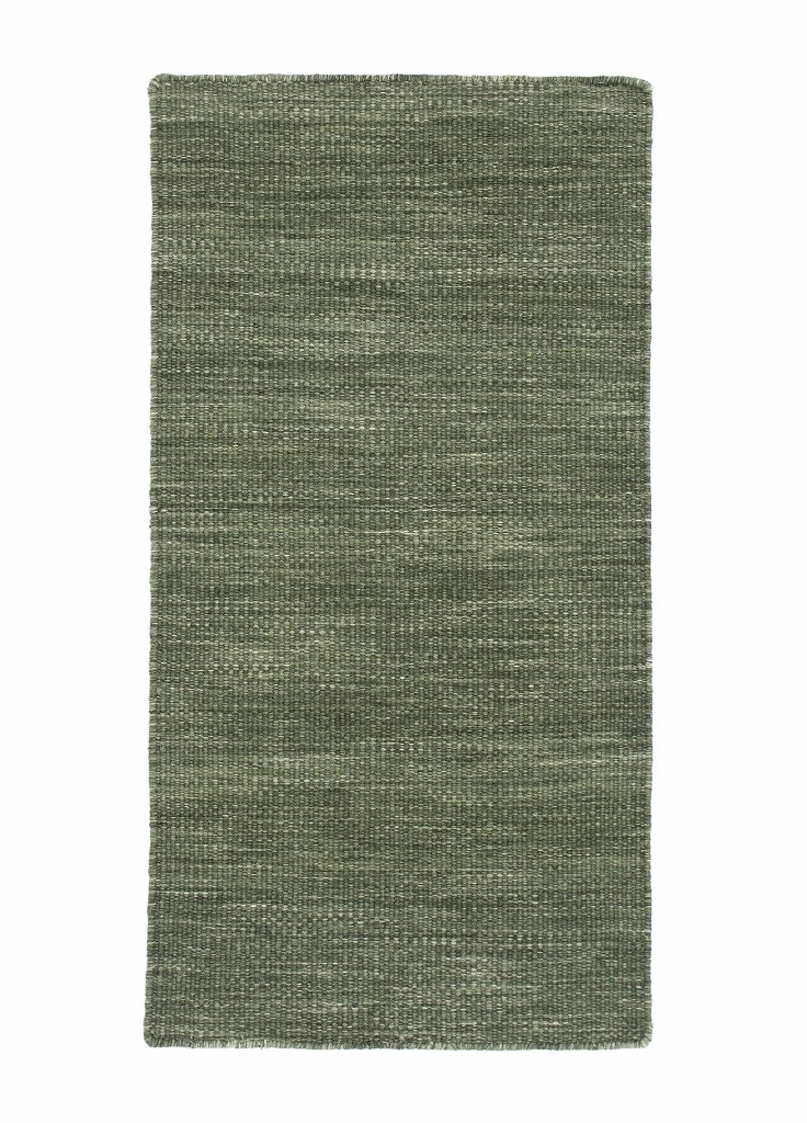 Birka är en handvävd ullmatta som har en snygg melerad finish i cremevita och sammetsgröna toner samt att mattan är vändbar och går att använda på båda sidor.