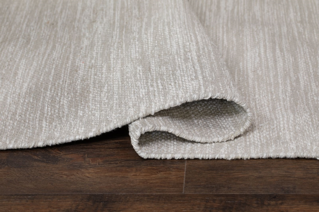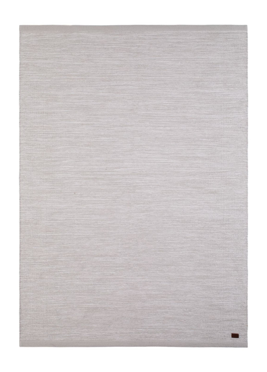 Borgholm garnmatta är en handvävd melerad matta i 100% bomull i silverfärgad ton. På kortsidorna har mattan en dekorativ enfärgad board i silverfärg som avslut.