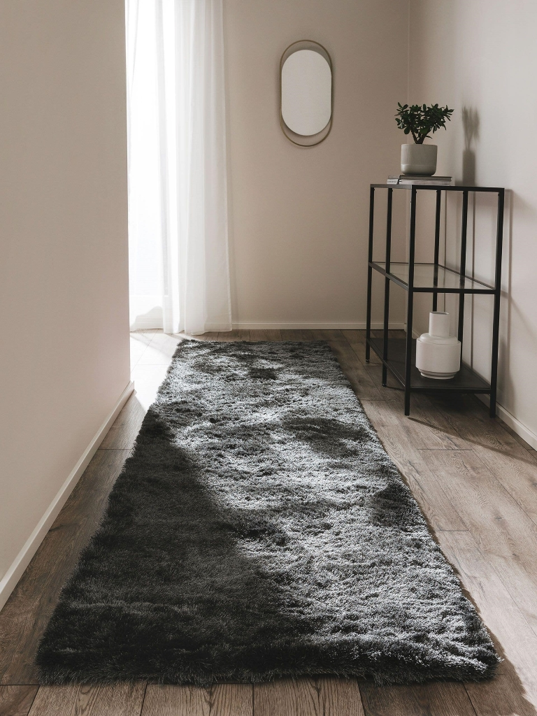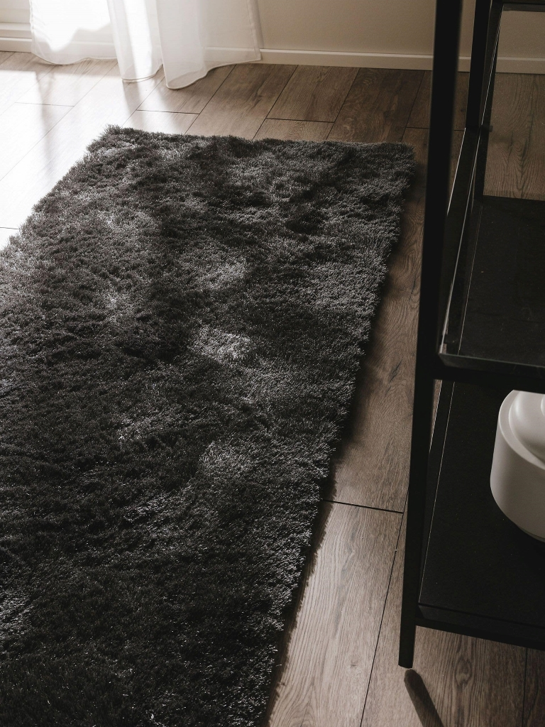 Denna otroligt täta och fina ryamatta har en alldeles speciell känsla, mycket material och med mjuka fiber som gör att den känns som satin när man stryker handen på den. Här ser du Brooklyn i färgen antracit.