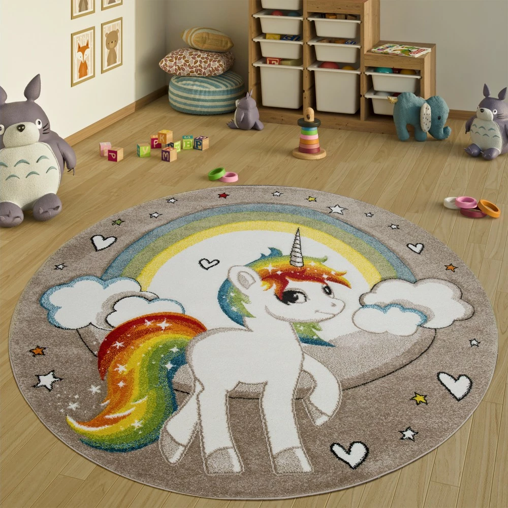 Caruba Enhörning är en frisématta som har en sandfärgad botten med matchande langettering. Mattan pryds av en vit enhörning som har en färgglad man och svans i regnbågens alla färger. Enhörningen omges av små hjärtan och vita moln. Mattan är gjord i carvingteknik, vilket innebär att den har utskärningar för att färger och detaljer skall bli mer framträdande och ge större effekt.