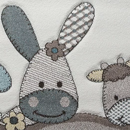 Caruba Farm är en frisématta som kommer i lugna och behagliga naturtoner. Mattan har en cremevit botten med sand-färgad langettering på långsidorna. Mattan pryds av söta djur i beige och pastell toner som vilar på ett vågmönster av rutor, hjärtan och prickar. Mattan är gjord i carvingteknik, vilket innebär att den har utskärningar för att färger och detaljer skall bli mer framträdande och ge större effekt.