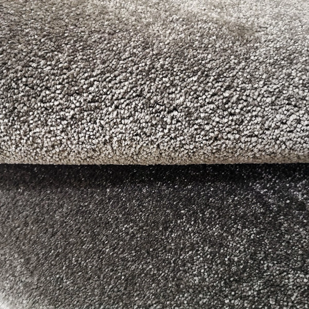 Clean är en maskinvävd enfärgad matta i syntetmaterial. Den har en kort skuren lugg, är lätt att dammsuga och är helt luddfri. Här ser du Clean i färgen grå.