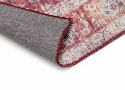 Cleo Colourful är en elegant matta som har vackert mönster med orientalisk inspiration. Mattan har en melerad roströd bottenfärg med tryckt mönster i röda och blå toner. Mattans kanter pryds utav en sydd langettering som består av riktiga stygn i röd ton, vilket ger en exklusiv och lyxig känsla. Cleo Colourful är maskinvävd i 100% polyester, vilket inte bara innebär att mattan är slitstark utan även att den är tacksam att hålla fri ifrån smuts.