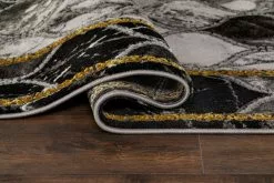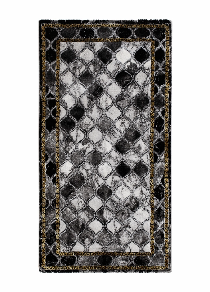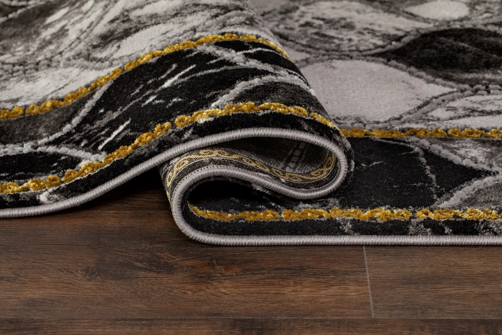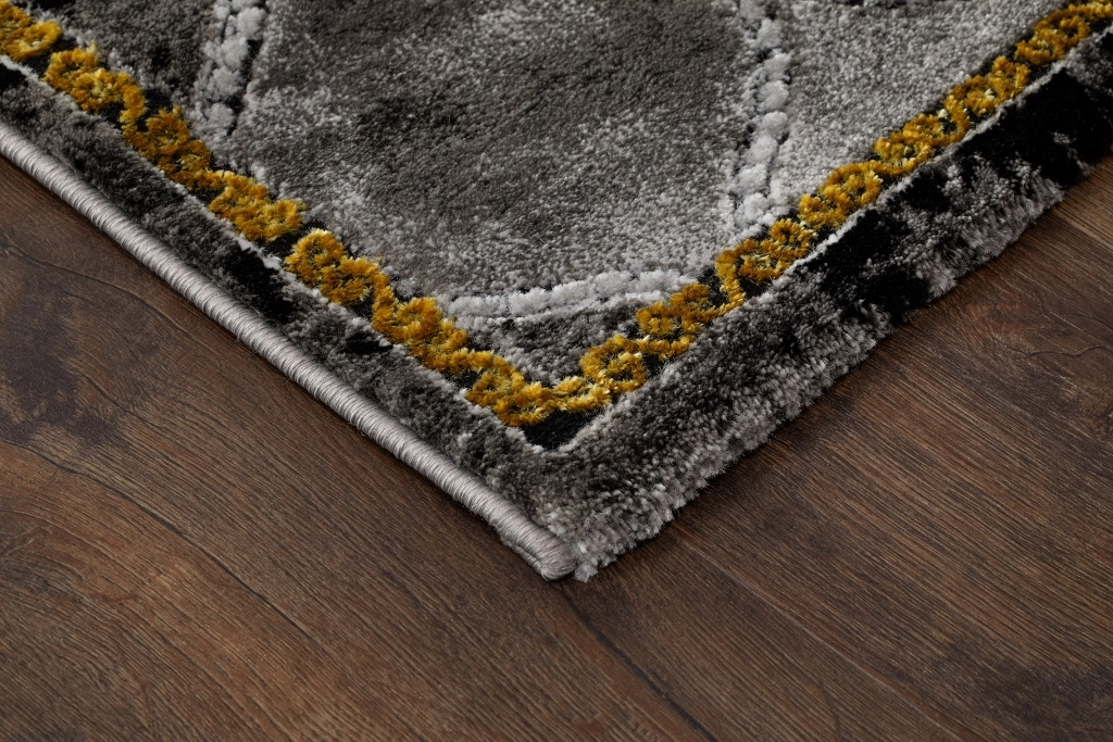 Craft Bell guld har en Grå/Silvrig bottenfärg med svart ram samt mönster i guld och matchande langettsöm som löper längs långsidorna. Mattan är gjord i high/low teknik vilket innebär att den har vissa partier som är upphöjda för att färger och detaljer skall bli mer framträdande och ge större effekt. Mattans mönster för tankarna till marmor då den skiftar i olika grå toner, samt att den har mörkare partier som ger mattan ett djup. Craft Bell guld har en kort skuren lugg och är maskinvävd i polypropylen samt polyester, vilket är syntetmaterial som är lätt att rengöra och hålla fri ifrån ludd och damm. Eftersom den har korta fibrer så tränger inte smuts in lika lätt som på en matta med längre fibrer och den är även resistent mot de flesta fläckar.