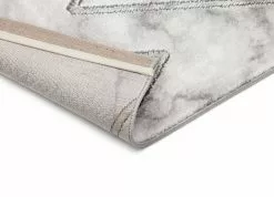 Mattans mönster för tankarna till marmor då den skiftar i olika vit/grå toner, samt att den har mörkare partier som ger mattan ett djup. Mattans mönster är tillverkat i Polyester vilket ger ett härligt lyster när ljuset faller på.