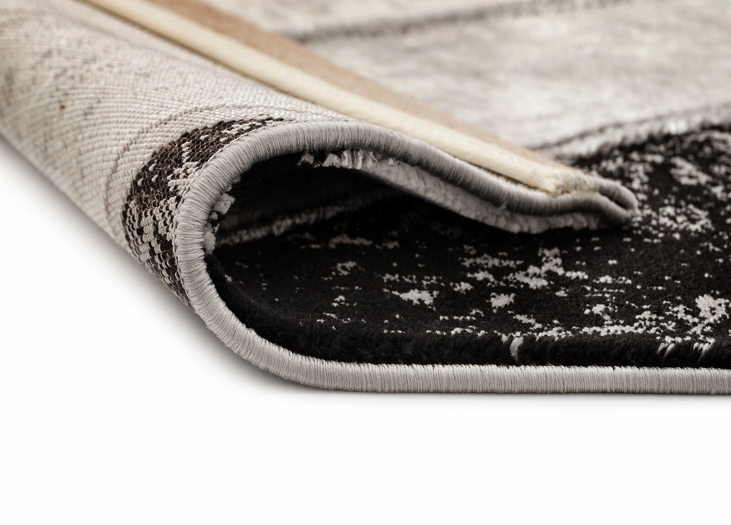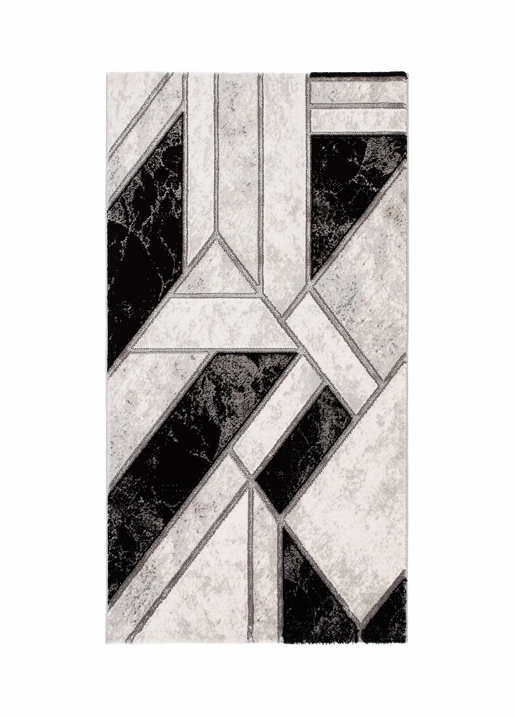 Mattans mönster för tankarna till marmor då den skiftar i olika vit/grå toner, samt att den har mörkare partier som ger mattan ett djup. Mattans mönster är tillverkat i Polyester vilket ger ett härligt lyster när ljuset faller på.
