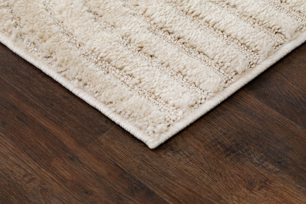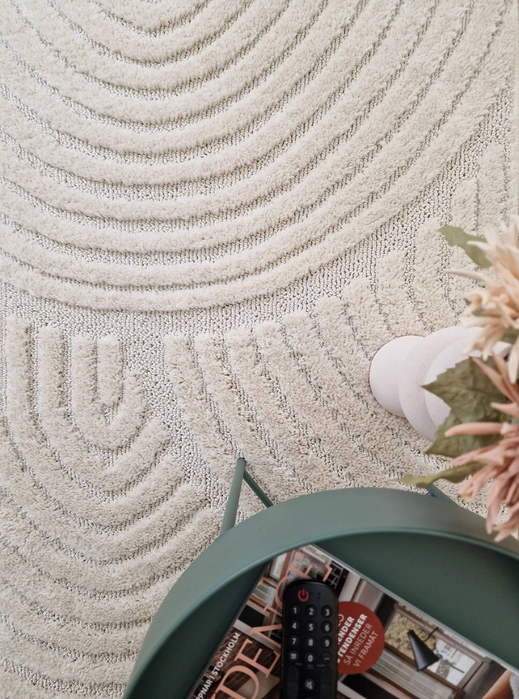 Doria Zen Cream är en maskinvävd wiltonmatta med det trendiga zen-mönstret som passar bra i såväl vardagsrum och sovrum som andra rum. Mattan har en botten i en mjuk offwhitefärg och ett mönster som går i samma ton. Mattan är gjord i high/low-teknik, detta innebär att mattan har olika lugghöjd så att mönstret blir mer framträdande och ge en större visuell effekt.
