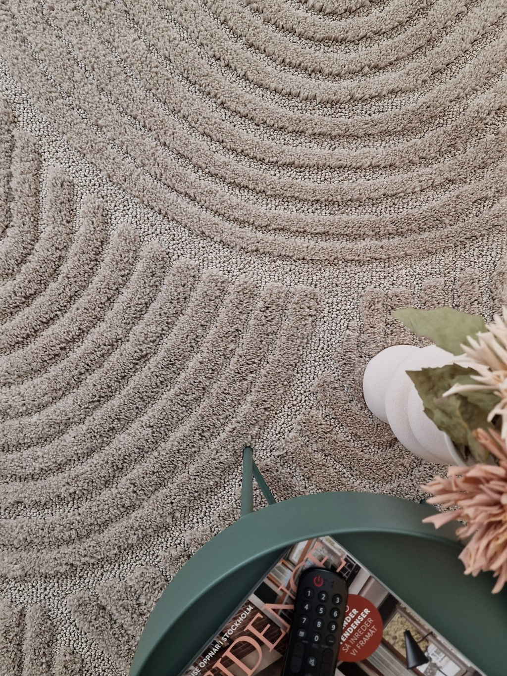 Doria Zen Linne är en maskinvävd wiltonmatta med det trendiga zen-mönstret som passar bra i såväl vardagsrum och sovrum som andra rum. Mattan har en mjuk linnefärgad botten och ett mönster som går i samma ton. Mattan är gjord i high/low-teknik, detta innebär att mattan har olika lugghöjd så att mönstret blir mer framträdande och ge en större visuell effekt.