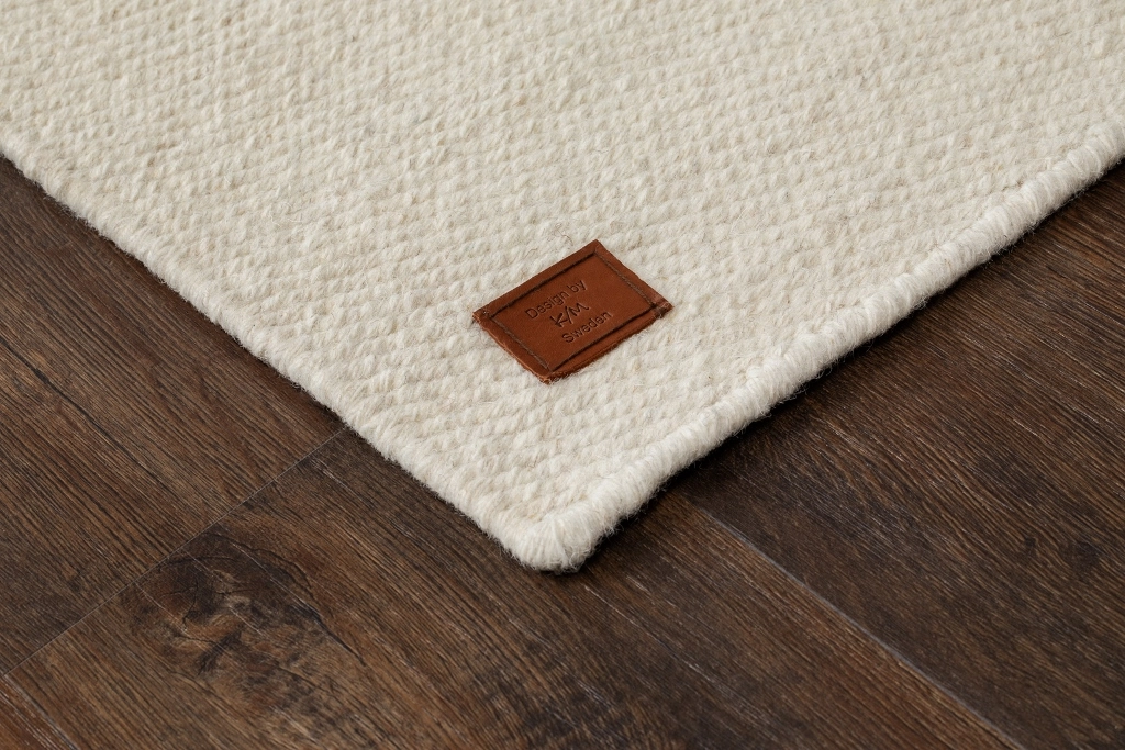 Ekeby är en stilren ullmatta som är handvävd i vit ton. Mattan har ett fint stukturmönster med en dekorativ langettering som matchar mattans färg. Ekeby är en fin och stilren matta som är snygg att ha i alla hem, den passar lika bra in som vid din säng eller under soffan. Mattan ger en härlig och mysig ombonad känsla i rummet. Eftersom mattan är handvävd kan små avvikelser i mönster, färg och storlek förekomma, detta gör att varje matta blir personlig och unik.