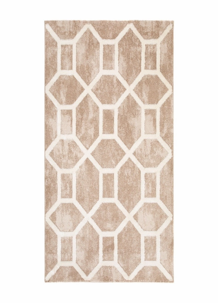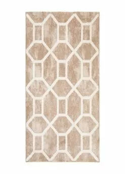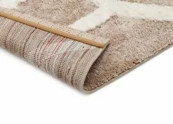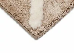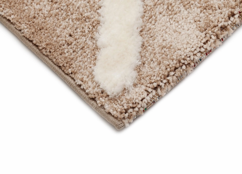 Entrens har cremefärgad bottenfärg med matchande langettering och elegant mönster i olika beige/vita toner. Mattan är tillverkad i en blandning utav polyprop/polyester och ett supersoft garn som gör mattan otroligt mjuk och även ger en fantastisk lyster, som skimrar vackert beroende på hur ljuset faller.