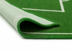 Fotbollsmatta är en lekfull matta som föreställer en fotbollsplan med en fotboll i mitten. Fotbollsmatta har en grön bottenfärg med matchande langettering och baksidan är gummerad, vilket gör att mattan ligger stadigt på plats.