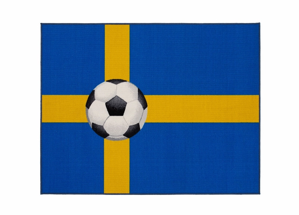 Fotbollsmatta Sverige är en lekfull matta med Sverige flagga samt en fotboll i mitten. Fotbollsmatta Sverige har en blå bottenfärg med matchande langettering och baksidan är gummerad, vilket gör att mattan ligger stadigt på plats.