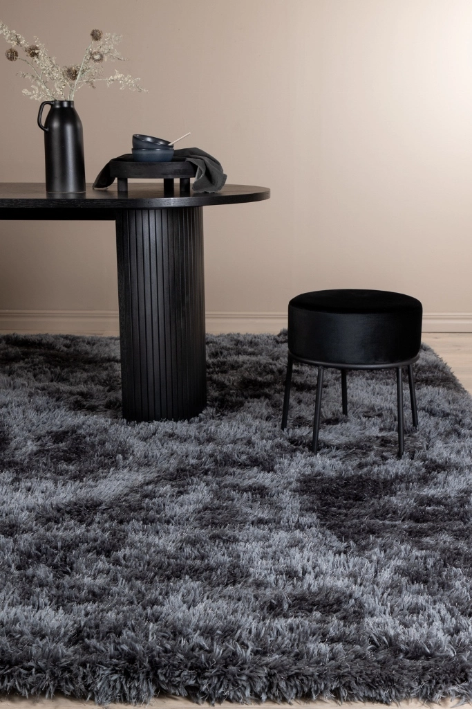 Knyt samman soffgruppen med den här mattdrömmen från serien Grace. Den här rektangulära polyestermattan i askig mörkgrå nyans är både elegant och ståtlig i sin utformning. Materialets egenskaper skapar ett skimrande lyster till rummet och ger ett ombonat intryck till ditt hem. Slipp oroa dig över repor i golvet, håll fötterna varma och inred med en glansfull matta som står sig över tid!