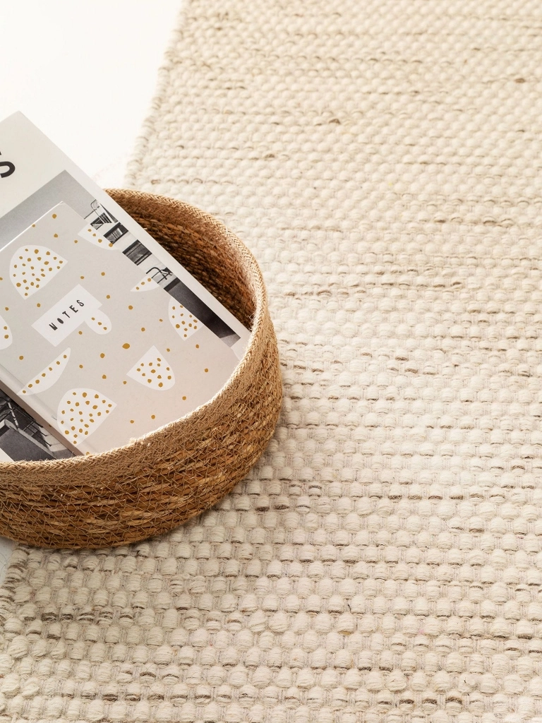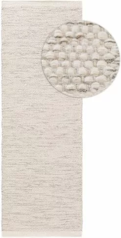 Graham är en stilren ullmatta som är handvävd i Nya Zeeländsk ull. Mattan är vävd med strukturmönster och är melerad i 2 olika toner som går i Cream samt grått och har en dekorativ board i båda kortändor. Mattan pryds även utav en brun läderetikett med tryck. Då mattan tillverkats i kvalitetsull så finns inget spill utav andra fiber i garnet, vilket borgar för en extra lyxig produkt.
