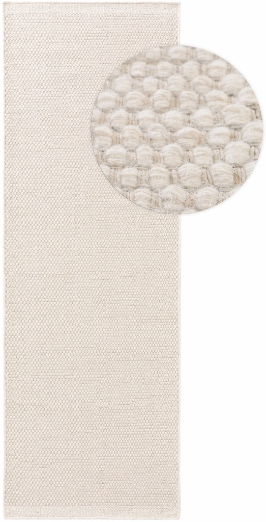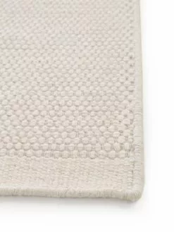 Graham är en stilren ullmatta som är handvävd i Nya Zeeländsk ull. Mattan är vävd med strukturmönster i tonen vit och har en dekorativ board i båda kortändar. Mattan pryds även utav en brun läderetikett med tryck. Då mattan tillverkats i kvalitetsull så finns inget spill utav andra fiber i garnet, vilket borgar för en extra lyxig produkt.