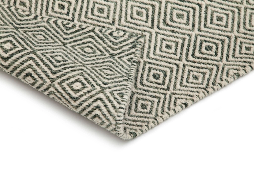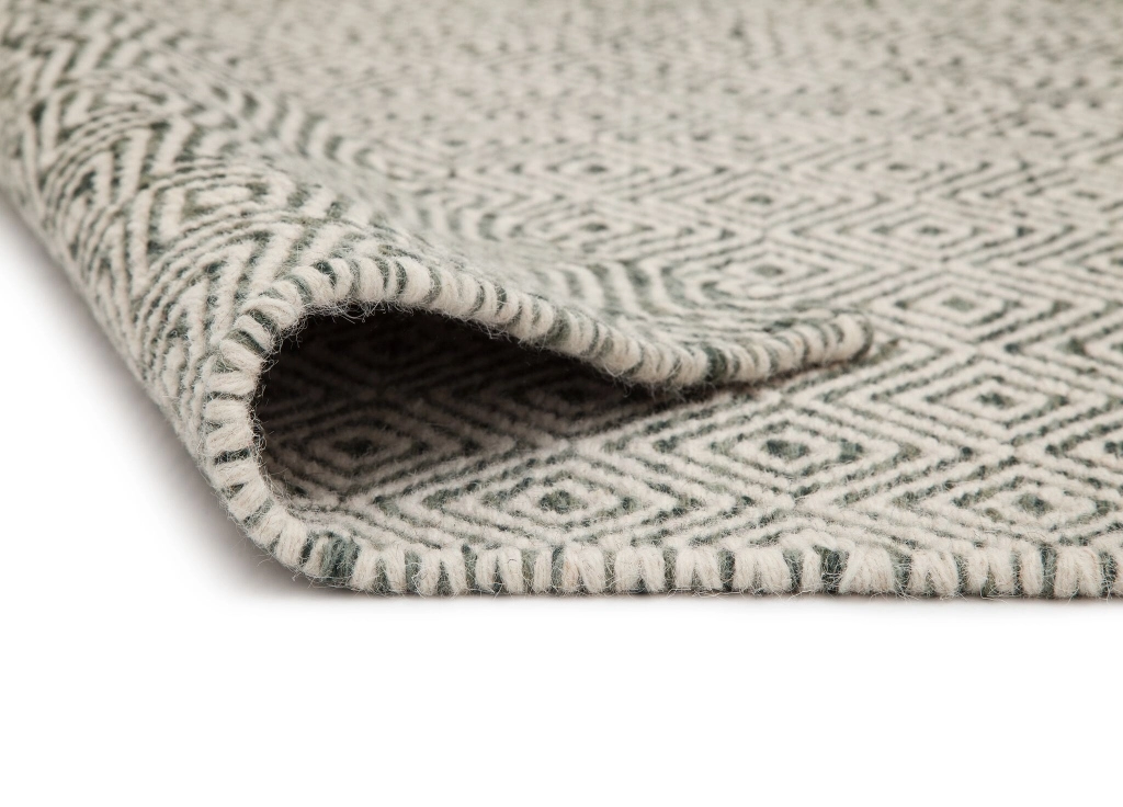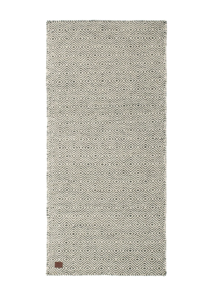 Gripsholm är en handvävd ullmatta med klassiskt gåsöga-mönster i olivgröna och cremevita toner. Mattan är inte bara vacker utan även slittålig, detta eftersom ull är ett naturmaterial som är smutsavvisande.