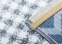 Indigo Animals är en maskinvävd matta som kommer i vita, grå och blå toner. Mattan har en grå langettering på långsidorna och pryds av ett rutmönster med små söta djur. Indigo Animals är gjord i carvingteknik, vilket innebär att mattan har utskärningar för att göra detaljer mer framträdande.