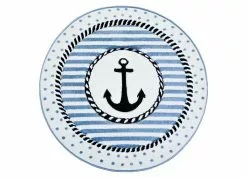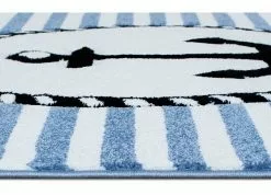 Indigo Ankare har en vit bottenfärg och blå langettering. Mattan har små prickar och ränder i blått, som pryds av ett svart ankare. Indigo Ankare är gjord i carvingteknik, vilket innebär att mattan har utskärningar för att göra detaljer mer framträdande.