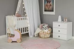 Den här supersöta mattan är perfekt för barnrummet. Mattan har tofsar på kortsidorna. som omger den vilket ger ett lekfullt intryck. Eftersom mattan är så mjuk och skön passar den alldeles utmärkt att leka på. Mattan kan dessutom tvättas i maskin, den är tillverkad i 100 % bomull och är färgad med ogiftiga färger.