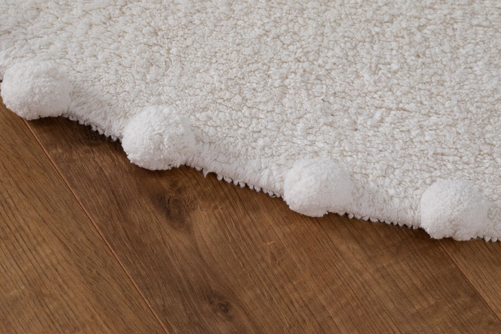 Den här supersöta mattan är perfekt för barnrummet. Mattan har tofsar på kortsidorna. som omger den vilket ger ett lekfullt intryck. Eftersom mattan är så mjuk och skön passar den alldeles utmärkt att leka på. Mattan kan dessutom tvättas i maskin, den är tillverkad i 100 % bomull och är färgad med ogiftiga färger.