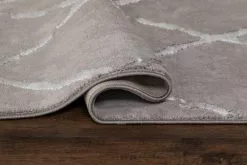 Karat Romb grå har en kort skuren lugg och pryds av ett berbermönster i gråtoner. Mattan har gråfärgad langettering på långsidorna och mönstret är tillverkat med polyester garn, vilket innebär att den har ett jättefint lyster och gör mönstret mer framträdande.