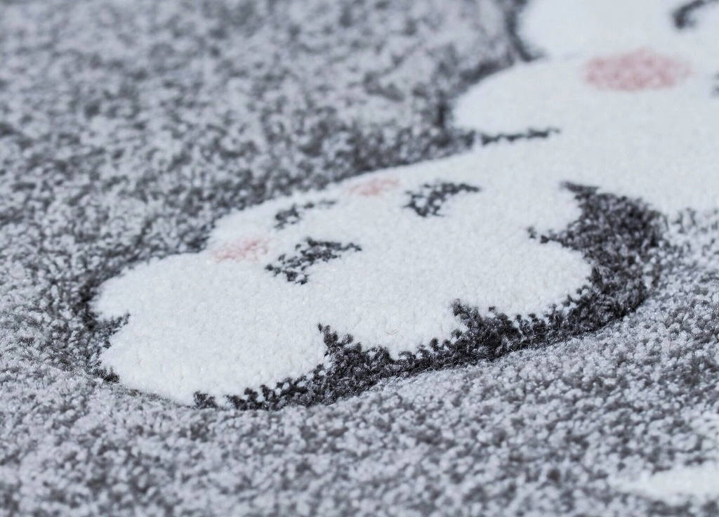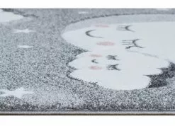 London Cloud är en stilren barnmatta som kommer i mjuka pastelltoner. Mattan har en grå botten som pryds utav en måne och moln, som har rosiga kinder i puderrosa. London Cloud har en grå langettering på långsidorna och är gjord i carvingteknik, vilket innebär att den har utskärningar för att detaljer skall bli mer framträdande.