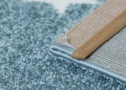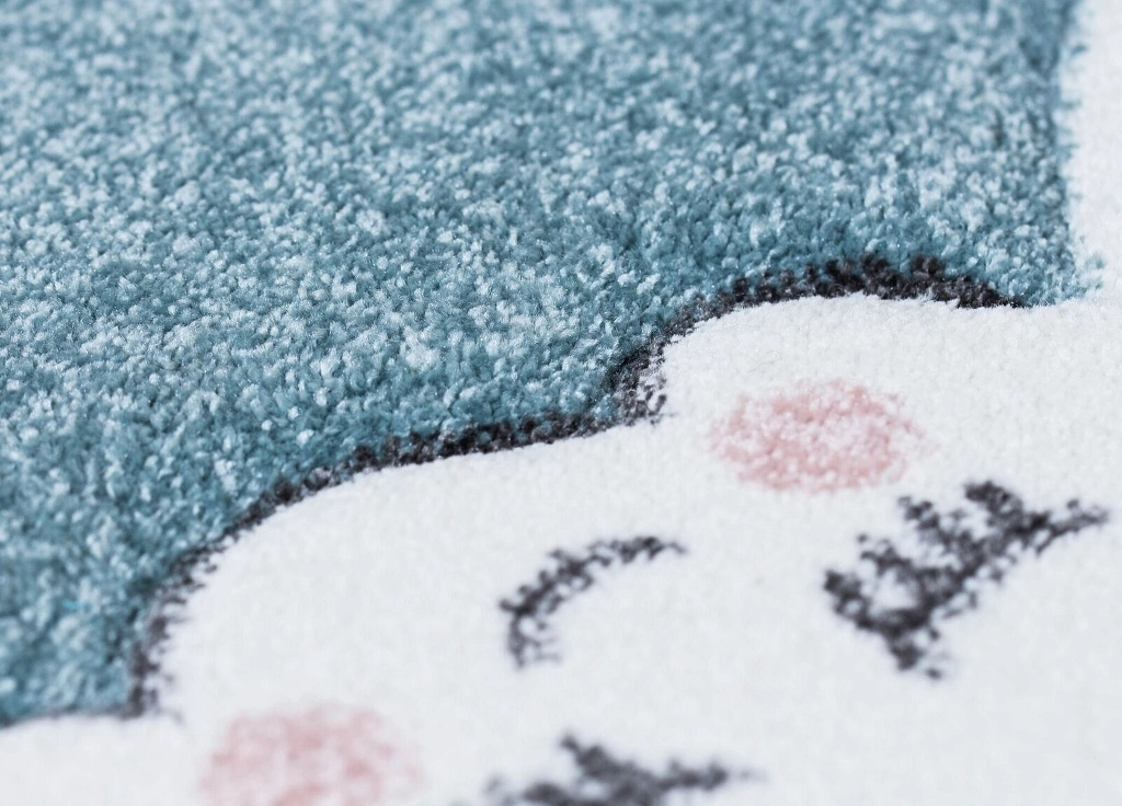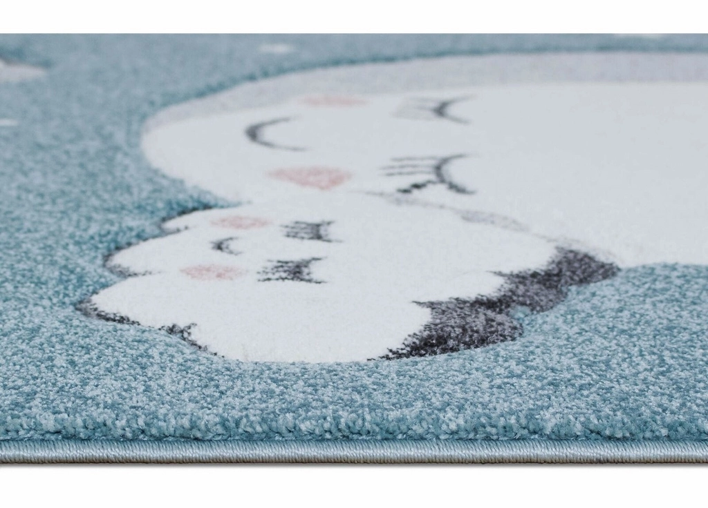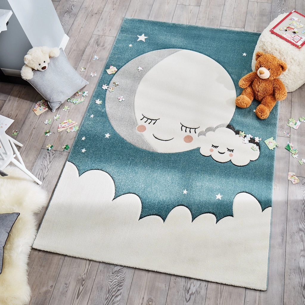 London Cloud är en stilren barnmatta som kommer i mjuka pastelltoner. Mattan har en turkos botten som pryds utav en måne och moln, som har rosiga kinder i puderrosa. London Cloud har en turkos langettering på långsidorna och är gjord i carvingteknik, vilket innebär att den har utskärningar för att detaljer skall bli mer framträdande.