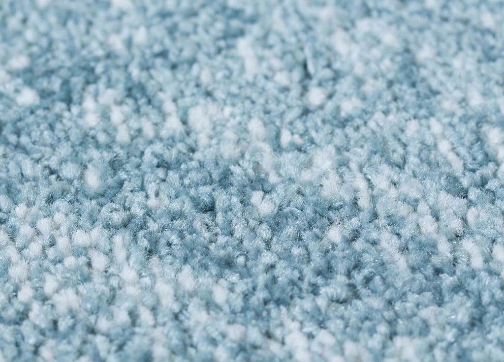 Melange har en kort skuren lugg och har melerade toner i vitt och mintblått. Mattan har en mintblå langettering på långsidorna och kortsidorna är förstärkta med lim, vilket gör mattan extra tålig. Melange är maskinvävd i polypropylen, vilket är ett syntetmaterial som är lätt att rengöra och hålla fri ifrån ludd och damm.