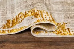 Moody har en Offwhite/naturfärgad botten med ett mönster i guld samt matchande langettsöm som löper längs långsidorna. Mattan är gjord i high/low teknik vilket innebär att den har vissa partier som är upphöjda för att färger och detaljer skall bli mer framträdande och ge större effekt. Mattans mönster ger en känsla av en karta och har en fin glans när ljuset faller på.