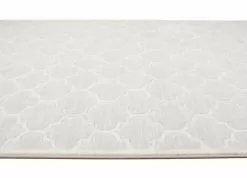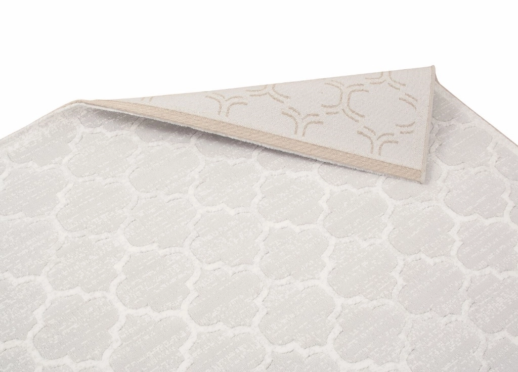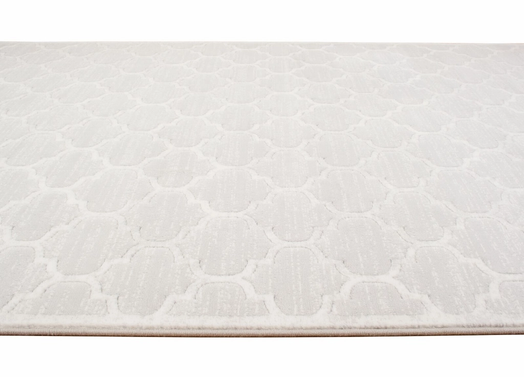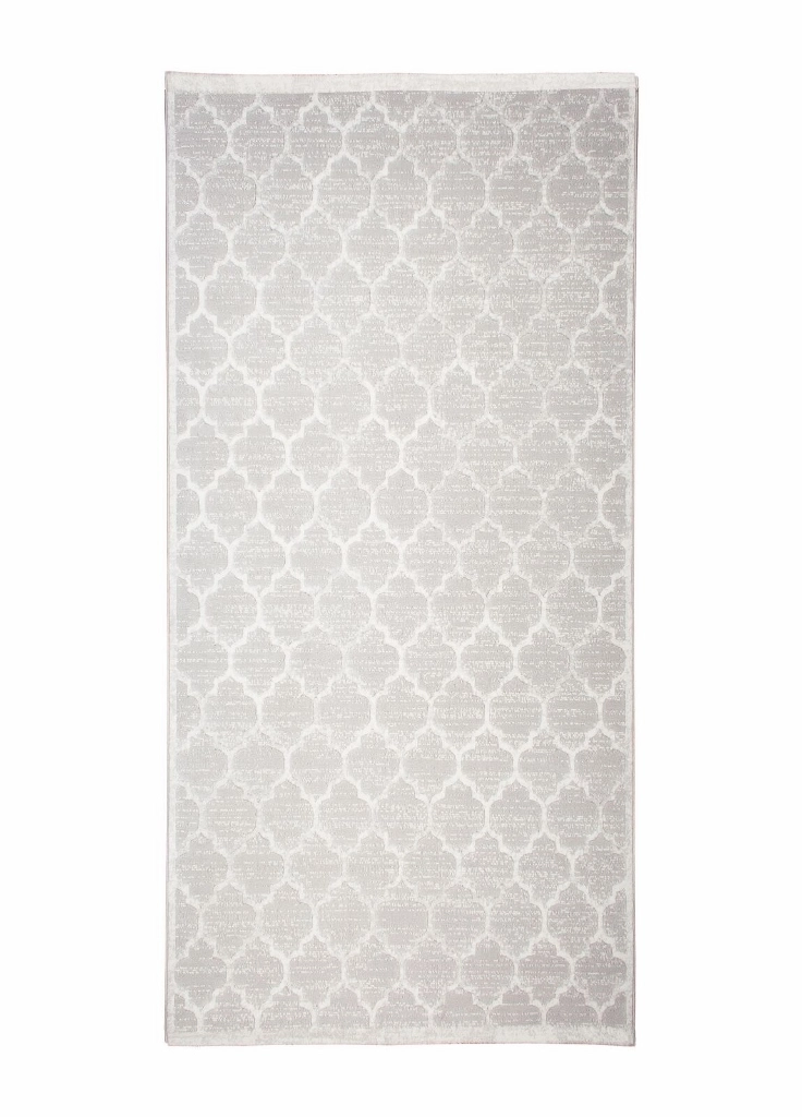 Palazzo Bell är en maskinvävd med ljusgrå bottenfärg. Mattan har ett stilrent och trendigt marockanskinspirerat mönster i vitt. Själva mönstret har lite lägre lugghöjd, vilket ger mattan struktur som gör mönstret mer framträdande. Palazzo Bell är sydd med en ljusgrå langettsöm och trådarna har en fin lyster som ger mattan en skimrande effekt, beroende på hur ljuset faller.
