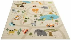 Play Animal Beige är en barnmatta på linnefärgad botten som tar med dig på en safaritur. Gör dig redo för lek och följ vägen till alla djuren. Vågar du bada hos krokodilerna eller kanske rida på kamelen? En matta som ger en fin färgklick i ditt rum och bjuder in till många timmars lek. Då mattan har en gel-baksida ligger den säkert på plats under leken. Skulle olyckan vara framme så går det bra att tvätta mattan i 30grader i tvättmaskin.