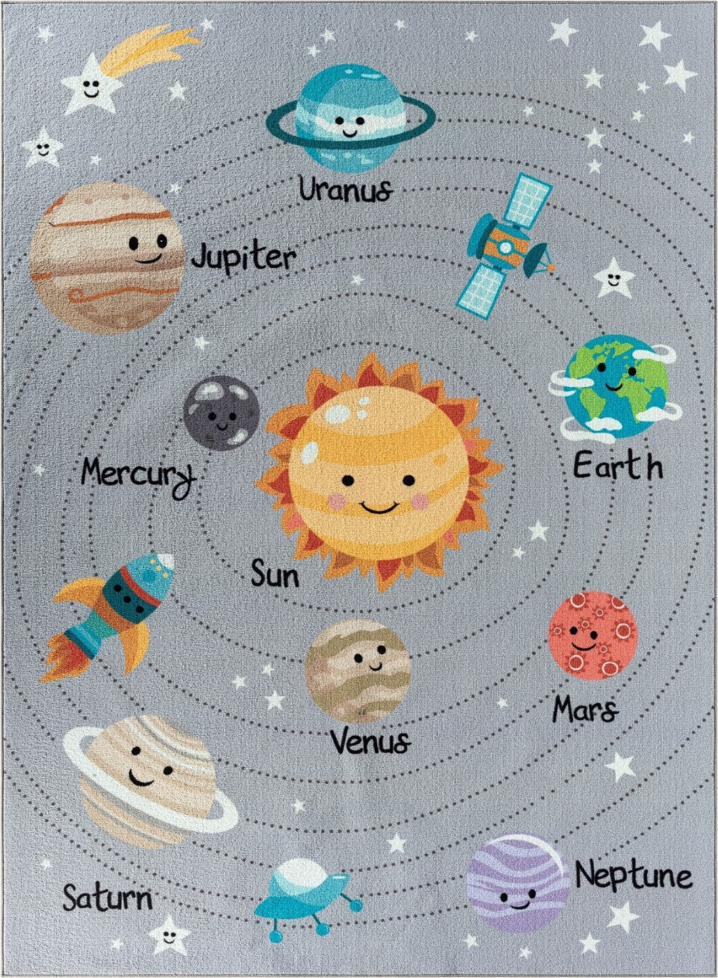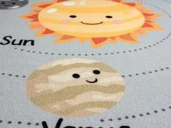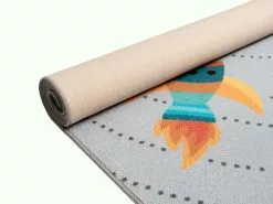 Play Space Grå är en barnmatta på grå botten som tar med dig på en lärorik resa ut i rymden. Solsystemet blandas tillsammans med raketer och stjärnfall. En matta som ger en fin färgklick i ditt rum och bjuder in till många timmars lek. Då mattan har en gel-baksida ligger den säkert på plats under leken. Skulle olyckan vara framme så går det bar att tvätta mattan i 30grader i maskin.