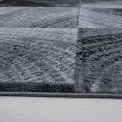 Plaza är en frizematta som har ett snyggt rutmönster och detaljer som går i färgerna svart och grå. Mattan har en kort skuren lugg och är maskinvävd i polypropylen, vilket är ett syntetmaterial som är lätt att rengöra och hålla fri ifrån ludd och damm.