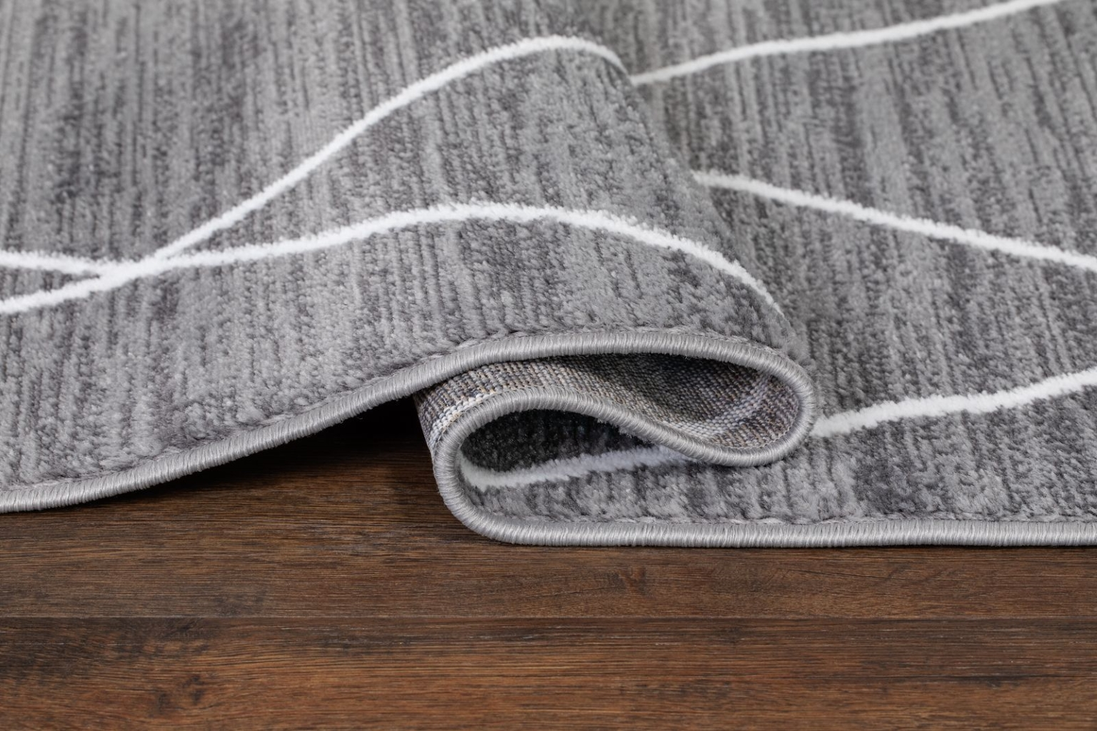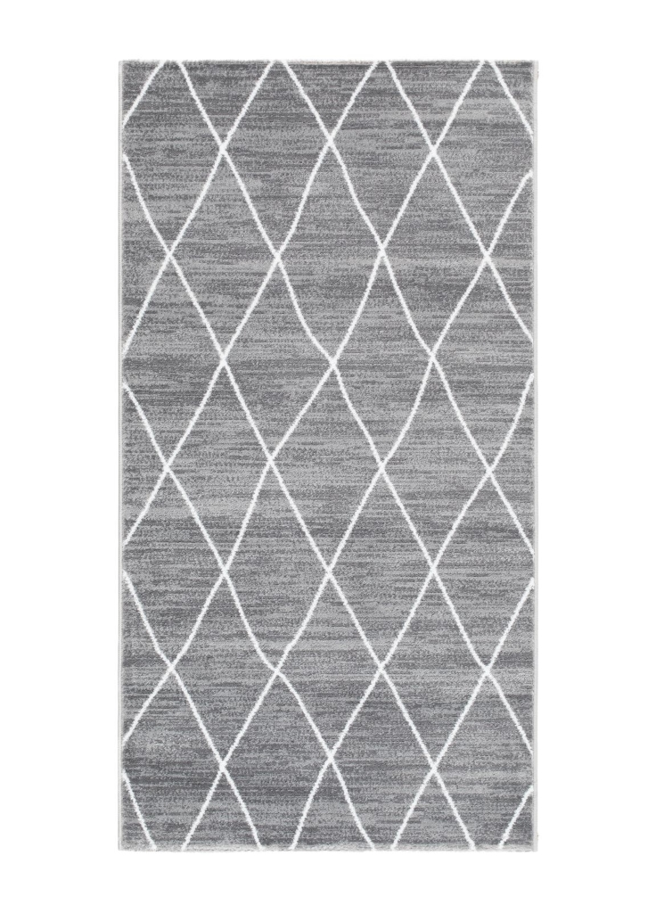 Savona Bell Mörkgrå är en maskinvävd matta med en melerad botten i ljusa och mörka gråa toner. Över mattan går sedan ett rombmönster i offwhite. Längs långsidorna går en matchande langettering som snyggt ramar in den mjuka mattan.
