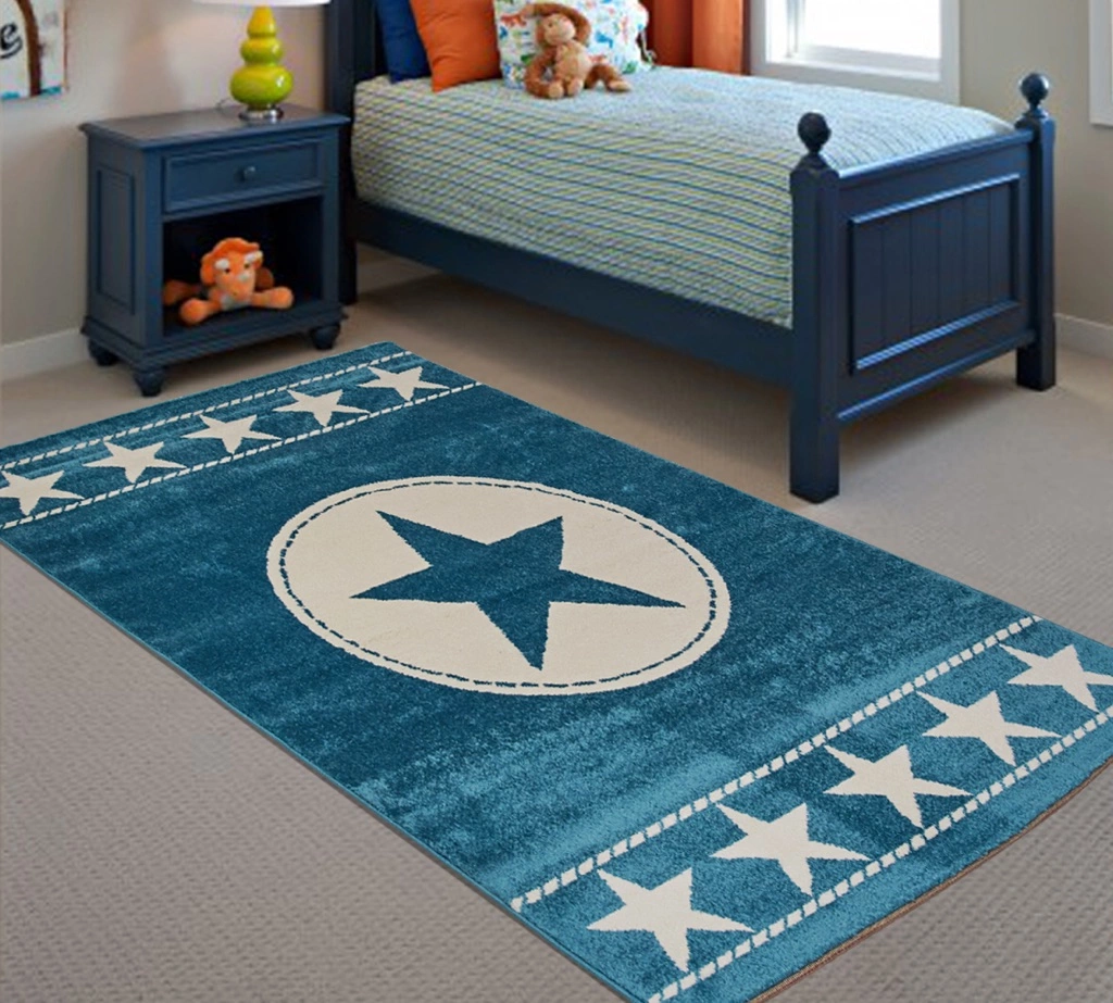 Mönster med centrerad stjärna i mitten och lite mindre stjärnor längs kortsidorna. Stars är tillverkad i slitstark polypropylen och är en lättstädad matta.