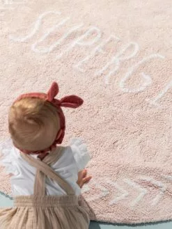 Denna söta runda matta pryds av texten ”SUPERGIRL”. Mattan är tillverkad av mjuk bomull. Mattan kommer göra sig fin i alla barnrum! Mattan är maskintvättbar i 30°.