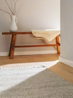En ullmatta med fransar på kortsidorn! Matta Tofta är slitstark och smutsavvisande vilket gör att mattan passar de flesta miljöer. Tofta är lika fin i sovrummet som vardagsrummet. Ullens naturliga fetter gör att mattan står emot smuts och fläckar på ett effektivt vis.