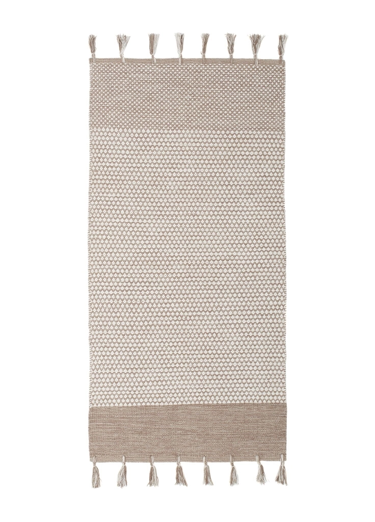| TVÄTTRÅD | Handtvättas i kallt vatten med såpa eller milt rengöringsmedel. Skura försiktigt med en mjuk borste i rändernas riktning. Kan även tvättas i maskin på max 30°. |